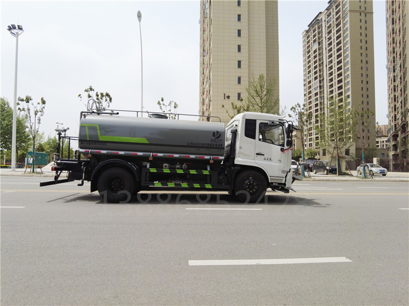 我公司產品標配前沖后灑、側噴、后置式工作平臺、平臺上有高壓軸承灑水炮(可360°旋轉,可調成柱狀最大射程 35米,也可調成霧狀最大射程15米,可調成:直沖狀、大雨、中雨、小雨、毛毛雨),配備優質大功率專用灑水泵,取力器,雜物過濾網,國標通用65型消防接口(可通過消防栓加水)、1套自流球閥系統(可自吸自排,可從河里或池塘抽水到罐體,最大吸程7米),2根引水鋼絲膠管。水泵、取力器、球閥、濾網均為國家標準產品,主管道加粗,法蘭墊、法蘭盤加厚,萬向前沖,大通徑球閥,具有性能優良,工作可靠、效率高、流量大、維修方便等特點。