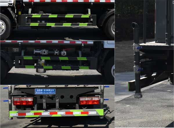 該車用途為抑塵降霾.主要裝置為罐體及噴霧裝置;罐體有效容積:3.98立方米,罐體外形尺寸(長×長軸×短軸)(mm):2900×1650×1200;ABS型號/廠家:ABS/ASR-12V-4S/4M/襄陽東風(fēng)隆誠機(jī)械有限責(zé)任公司,側(cè)、后防護(hù)材料均為:Q235碳鋼,連接方式均為:螺栓連接,后部防護(hù)截面尺寸(mm):120×50,后部防護(hù)離地高度(mm):390;隨底盤選裝駕駛室,選裝噴霧裝置樣式,選裝底盤附件位置。隨底盤選裝燃油箱,電瓶,尿素罐,儲氣筒左右安裝位置,選裝噴灑裝置樣式。 |