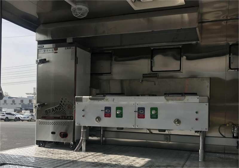 4】廂體內部配備蒸飯柜、猛火灶、平冷柜、煙機、水池、菜架