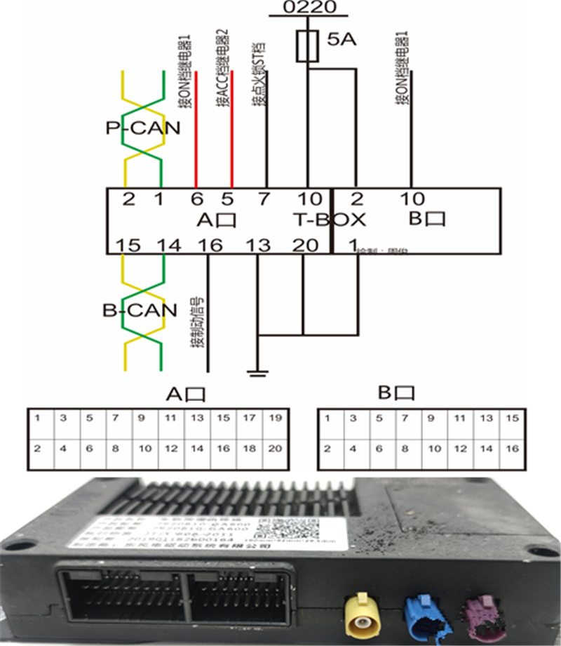 我們先來看看T-BOX的接口,大多數(shù)廠家的T-BOX接口有兩部分,一部分是與GPS天線和4G天線連接的“天線接口”,另一部分是與車輛電氣系統(tǒng)連接的“電氣信號接口”。