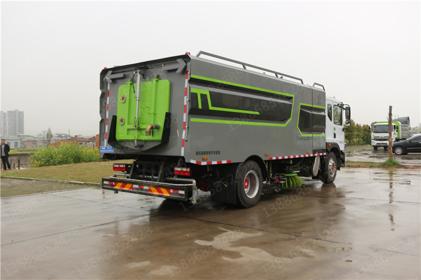 多利卡D9洗掃車,國六16方洗掃車,大型道路洗掃車,高壓清洗掃路車,該車主要用于清掃、清洗路面垃圾污物;主要裝置為箱體及清掃裝置;隨底盤選裝駕駛室;ABS系統生產廠家,型號:焦作博瑞克控制技術有限公司,J ABS;襄陽東風隆誠機械有限責任公司,ABS/ASR-24V-4S/4M.側防護為專用裝置代替,后防護材料為:Q235碳鋼,連接方式為:螺栓連接,后部防護截面尺寸(mm):230×60,后部防護離地高度(mm):400.采用5000mm,4500mm軸距。整車長/軸距/后懸對應關系(mm):8630/5000/2370,8300/4500/2540.選裝限速裝置,限速89.