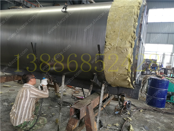 保溫層在制作上主要是在罐體外部先焊接一個支撐骨架,其厚度一般為100mm,然后再用保溫材料把骨架填充滿。在保溫材料的選擇上我們一般考慮導熱系數(shù)小,耐高溫,質量輕,吸聲性能好,絕緣性和化學穩(wěn)定性好的硬質聚氨酷泡沫塑料或巖棉。然后需要對填充的保溫材料進行修正,最后在骨架上撞上蒙板,蒙板一般使用厚度為lmm的冷軋板。