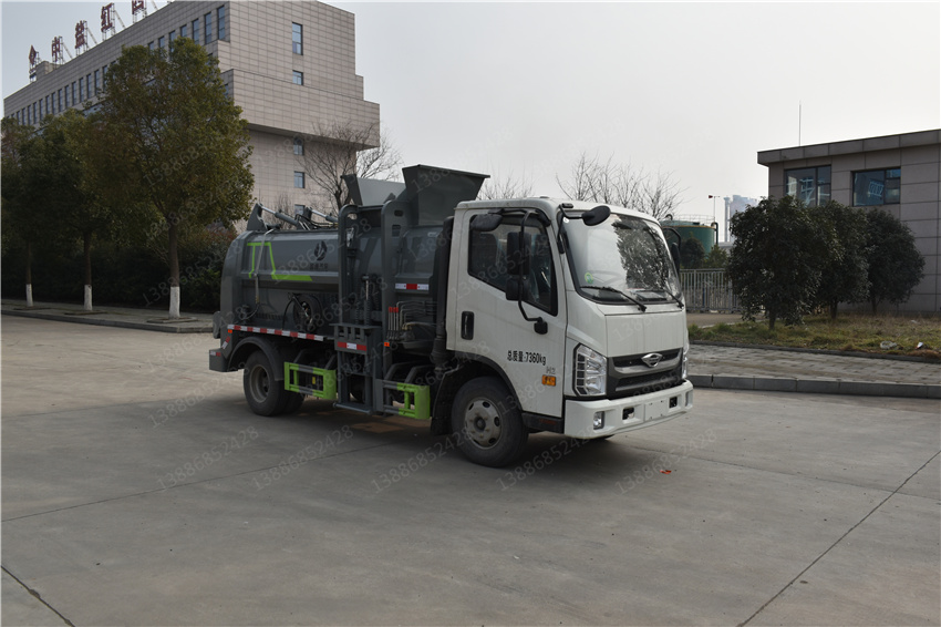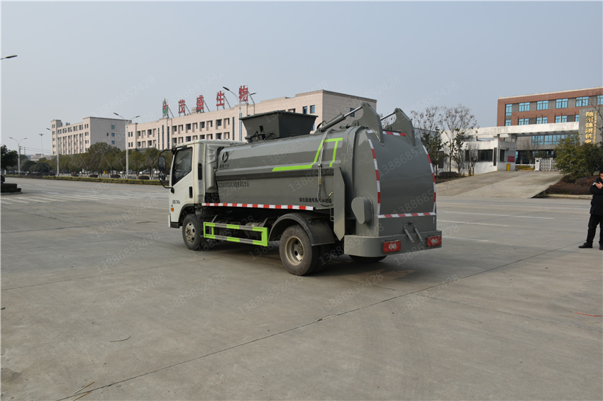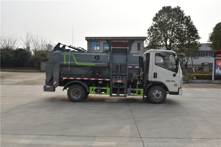福田餐廚垃圾車,藍(lán)牌餐廚垃圾車,廚后垃圾車,餐廚掛桶式垃圾車,領(lǐng)航自裝卸垃圾車,該車用于餐廚垃圾收集清運(yùn),主要專用裝置為箱體;隨底盤選裝駕駛室;側(cè)防護(hù)材料均為:Q235碳鋼,連接方式為:螺栓連接,后部防護(hù)由專用裝置替代,后部離地高度440mm;ABS系統(tǒng)控制器型號(hào)為CM4XL-4S/4M,ABS系統(tǒng)控制器生產(chǎn)企業(yè)為廣州瑞立科密汽車電子股份有限公司. |