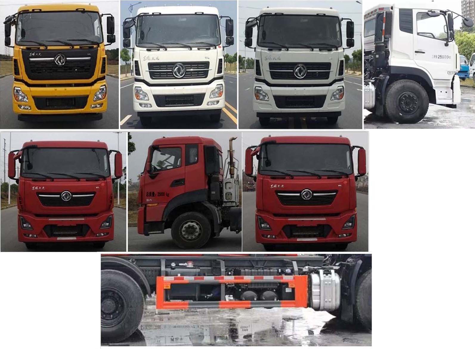 東風垃圾車,車廂可卸式垃圾車,天龍車廂可卸式垃圾車,掛桶式垃圾車,該車主要用于垃圾轉運,專用裝置為勾臂系統.整車長(mm)/軸距(mm)的對應關系分別為:9380/5350+1350,8380/4350+1350.側/后部防護材料為:Q235碳鋼,連接方式均為:螺栓連接,后部防護截面尺寸(mm):120×50,后部防護離地高度(mm):480.ABS型號/生產廠家:3631010-C2000/東科克諾爾商用車制動系統(十堰)有限公司,ABS 8/東科克諾爾商用車制動系統(十堰)有限公司,4460046450/威伯科汽車控制系統(中國)有限公司;選裝直接供電式ETC車載裝置;發(fā)動機型號/油耗值(L/100km):D6.7NS6B290/31.3,DDi75E350-60/31.7,DDi75E300-60/31.7,DDi75E340-60/31.7,D6.7NS6B320/31.3.該車安裝具有衛(wèi)星定位功能的行車記錄儀.發(fā)動機D6.7NS6B290、DDi75E350-60、DDi75E300-60、DDi75E340-60、D6.7NS6B320的最大凈功率為208kW,252kW,215kW,245kW,226kW.隨底盤選裝駕駛室,隨底盤選裝后處理外形,隨底盤選裝限速裝置,限速為89km/h. |