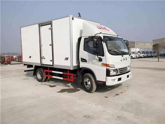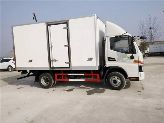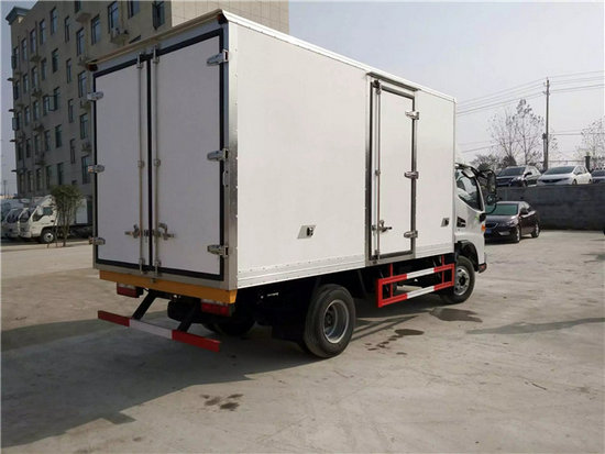 冷藏車廂體:采用國標A級聚氨酯保溫材料,厚度為8厘米,廂體內外采用玻璃鋼材質全包裹。不銹鋼鎖件。包角、包邊鋁合金型材。底盤采用高強度花紋鋁板定制。可選裝肉鉤導軌,和底部通風槽