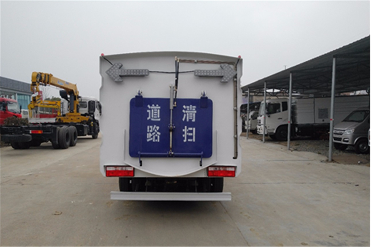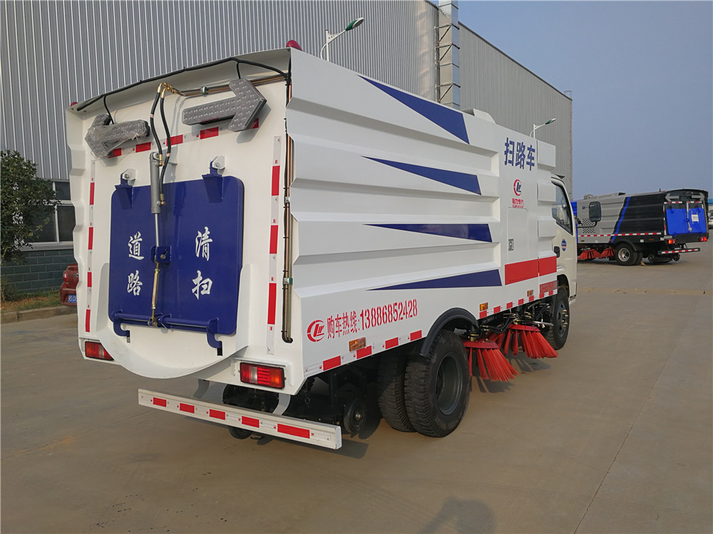該掃路車采用東風多利卡二類底盤改裝,加裝副發動機、風機、清水箱、垃圾箱、左右立掃、掃盤降塵系統,液壓系統、專用裝置電控系統和副車架等改裝而成。