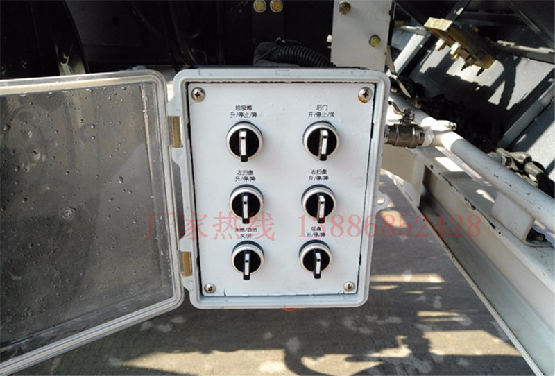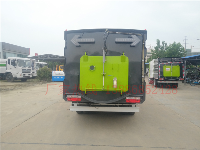 廂體采用傾翻卸料,帶高壓沖洗自潔裝置。垃圾箱自潔裝置可在垃圾箱卸料時幫助卸料,沖洗附著在箱體內壁上的殘留垃圾。