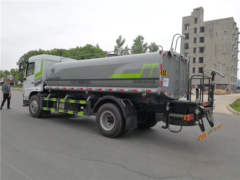東風華神F5灑水車_華神玉柴200灑水車_華神15方灑水車_湖北盈通專用汽車有限公司,ABS型號:3631010-C2000,J ABS;ABS生產企業:東科克諾爾商用車制動系統(十堰)有限公司,焦作博瑞克控制技術有限公司;選裝描述:隨底盤選裝駕駛室,隨底盤選裝底盤布置;所用材料材質、連接方式以及后部防護裝置的主要尺寸參數(斷面尺寸和離地高度):側、后防護材料均為:Q235碳鋼,連接方式均為:螺栓連接,后部防護截面尺寸(mm):120×50,后部防護離地高度(mm):450;罐體有效容積(立方米)、罐體外形尺寸(mm):罐體有效容積:11.45立方米;罐體外形尺寸(長×長軸×短軸)(mm):5200×2300×1410,4400×2350×1600;專用功能及裝置:該車主要用于城鄉園林綠化,路面噴灑,除塵和降溫;主要裝置為水罐及噴灑裝置; |